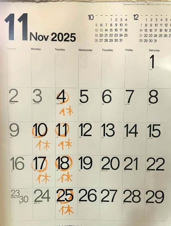 11月のお休みです。
